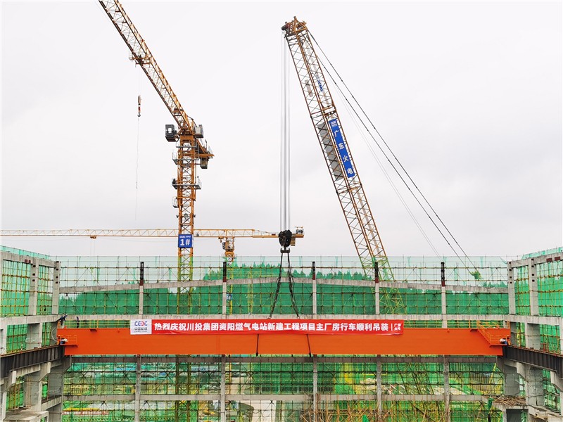 5月9日11時08分,隨著現(xiàn)場指揮一聲令下,一臺650T履帶吊起重機伸出70余米長的主臂,資陽燃氣電站項目主廠房行車在其作用下緩緩上升,逐漸到達主廠房指定位置,標志著資陽燃氣電站項目全面進入主廠房設(shè)備安裝階段。