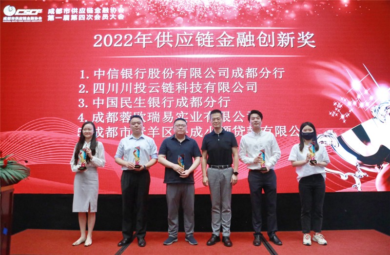 2023年6月2日,成都市供應(yīng)鏈金融協(xié)會一屆四次會員大會隆重召開,川投云鏈榮獲“2022年服務(wù)地方經(jīng)濟(jì)突出貢獻(xiàn)獎”和“2022年供應(yīng)鏈金融創(chuàng)新獎”兩項(xiàng)殊榮。