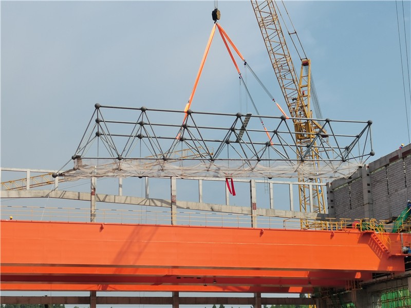 2023年6月9日8時18分,資陽燃?xì)怆娬局鲝S屋面網(wǎng)架開始吊裝。