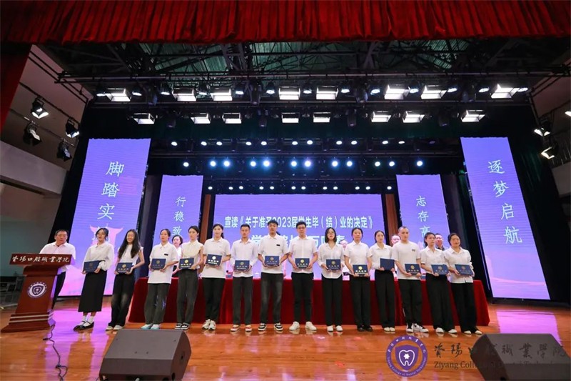 院長(zhǎng)萬(wàn)呼春宣讀《資陽(yáng)口腔職業(yè)學(xué)院關(guān)于準(zhǔn)予2023屆學(xué)生畢(結(jié))業(yè)的決定》,黨委副書(shū)記李曉東宣讀省級(jí)、校級(jí)優(yōu)秀畢業(yè)生表彰決定。