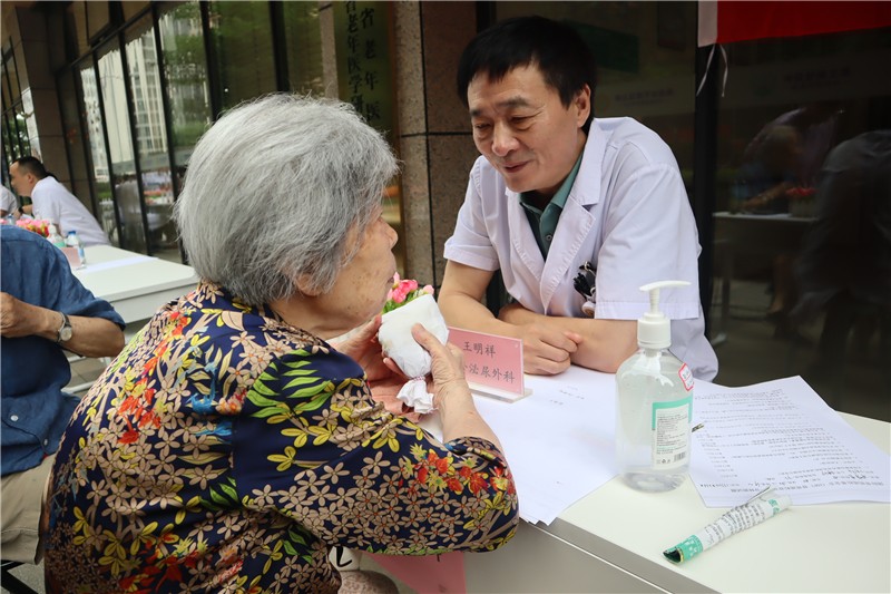 開業(yè)當(dāng)天,為慶祝建黨102周年,弘揚(yáng)偉大建黨精神,四川大學(xué)華西醫(yī)院老年醫(yī)學(xué)中心、四川省老年醫(yī)院的多名專家在現(xiàn)場開展“迎接中國共產(chǎn)黨建黨102周年”主題的健康義診活動,為長者提供健康診療、老年病評估、中醫(yī)診脈服務(wù),并向長者科普疾病預(yù)防、健康管理及心理衛(wèi)生等方面知識。