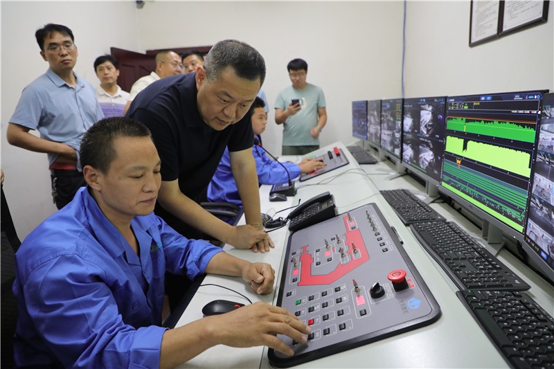 王峰一行還前往嘉陽煤礦采煤二隊(duì),實(shí)地參觀了嘉陽煤礦智能化綜采無人工作面地面遠(yuǎn)程操控平臺,興致勃勃地觀看了平臺現(xiàn)場演示,對嘉陽高科技新技術(shù)的運(yùn)用連連稱贊。