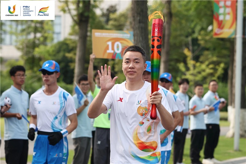 奮斗青春,放飛夢想。7月20日,來自川投信產(chǎn)所屬宏明雙新模具保障部的陳自力光榮獲選第31屆世界大學生夏季運動會火炬?zhèn)鬟f成都站(第四日)第10棒火炬手,他高舉燃燒的火炬,以昂揚的姿態(tài)、堅定的步伐,圓滿完成火炬?zhèn)鬟f任務。