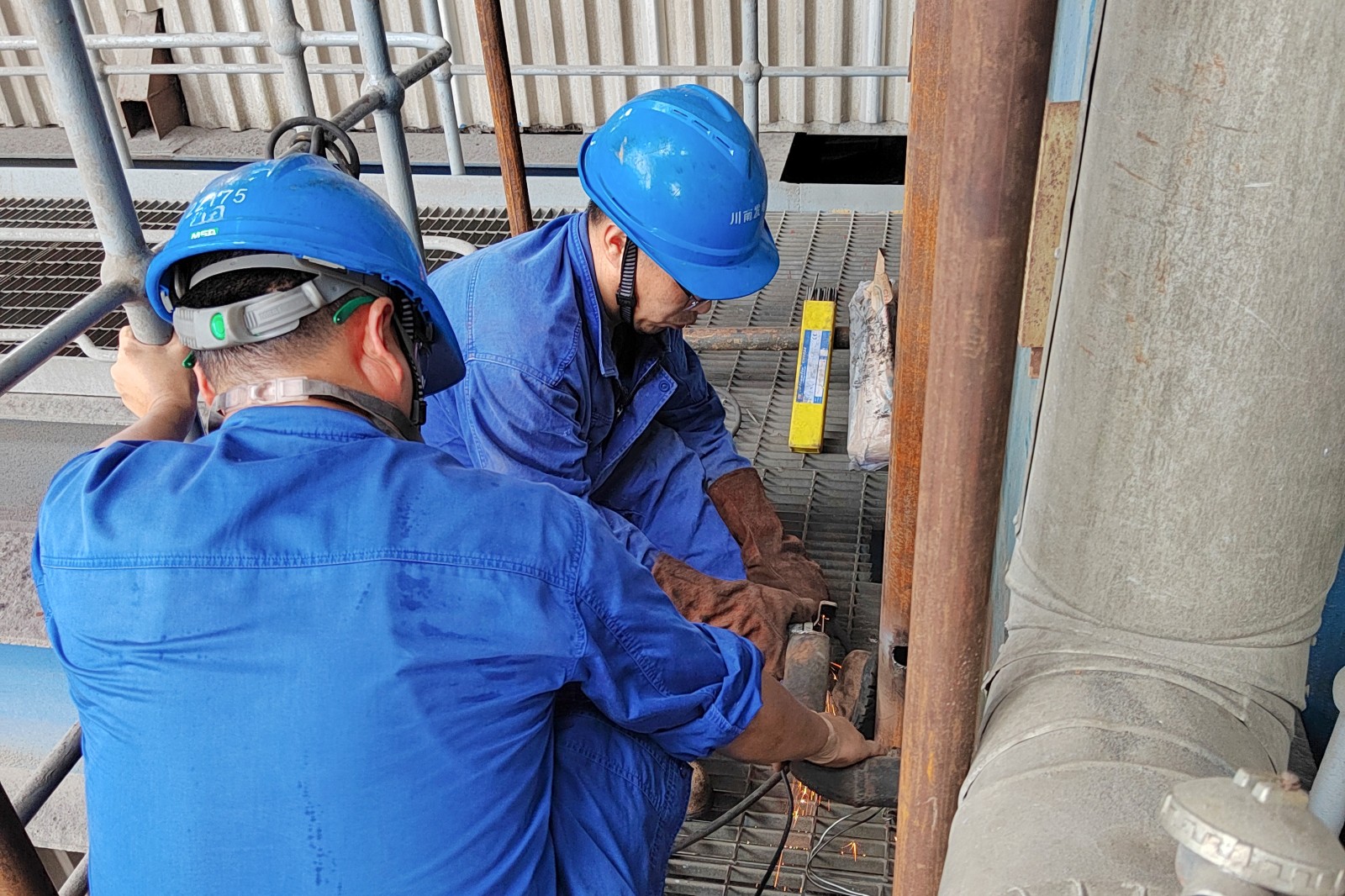 為深挖節(jié)能降耗潛力,公司從各生產(chǎn)環(huán)節(jié)入手,通過系統(tǒng)梳理,提出了不少有效解決方案和改進措施。鍋爐原受熱面沖洗水源采用消防水,因沖洗位置較高,鍋爐沖灰作業(yè)時需啟動電動消防泵方能滿足沖洗要求。電動消防泵啟動后因再循環(huán)壓力調(diào)節(jié)容量不足,需手動開啟多個消防栓泄壓,造成了工業(yè)水資源浪費,且啟停電動消防泵容易對消防水管路產(chǎn)生沖擊造成泄漏。為把節(jié)能降耗工作落實到實處,公司機務(wù)專業(yè)人員群策群力,克服人員緊缺和現(xiàn)場安裝風險難度大等困難,搶在機組檢修開工前自主完成了2號鍋爐受熱面沖洗水源改造工作,將鍋爐受熱面沖洗水源改為空預器低壓沖洗水。下一步將根據(jù)使用效果擇機對1號爐進行相應改造。