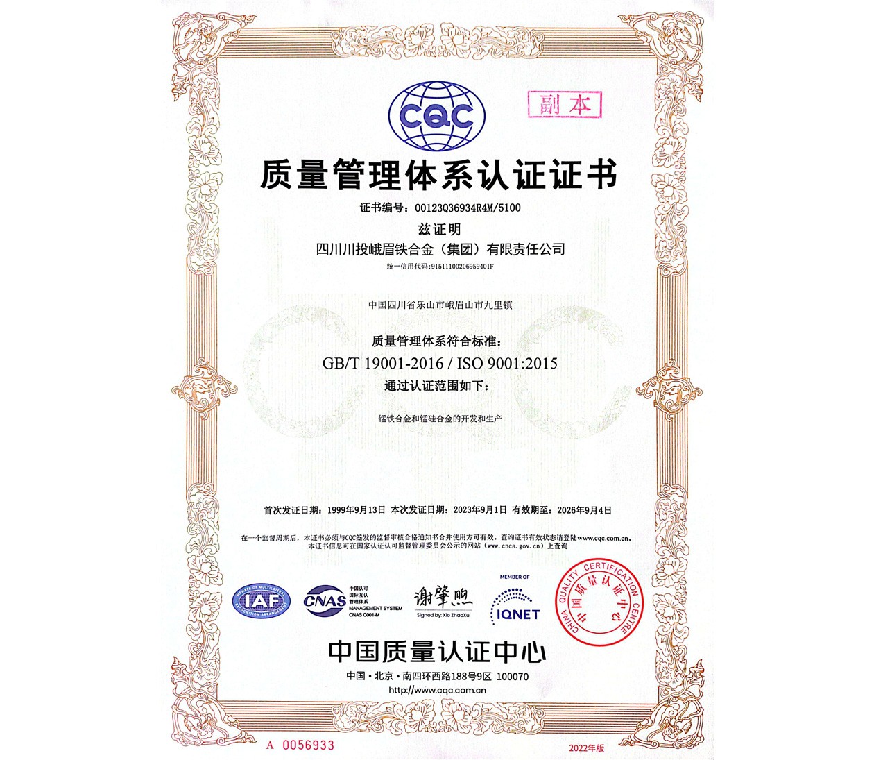 近日,川投峨鐵公司順利通過了2023年ISO9001質(zhì)量管理體系再認證審核。