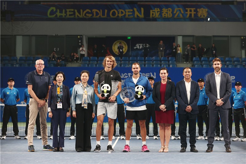 本屆賽事共有54名國際網(wǎng)球好手參加,其中茲維列夫、穆塞蒂、迪米特洛夫等頂尖網(wǎng)球明星也在此進(jìn)行了激烈角逐,群雄逐鹿,精彩非常,吸引了廣大網(wǎng)球愛好者們的熱烈關(guān)注,約4萬人次到場觀賽,決賽現(xiàn)場更是座無虛席,總票房較之前上漲了三倍。最終,雙打頭號種子杜姆比亞、勒布爾苦戰(zhàn)三盤,憑借實力奪得職業(yè)生涯首個巡回賽雙打冠軍;單打頭號種子茲維列夫力挽狂瀾,擊敗超級黑馬薩菲烏林,在川投國網(wǎng)捧起職業(yè)生涯第21座巡回賽冠軍獎杯。