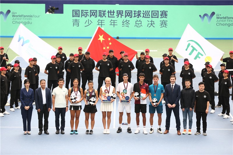10月22日,2023年國(guó)際網(wǎng)聯(lián)世界網(wǎng)球巡回賽青少年年終總決賽頒獎(jiǎng)儀式在川投國(guó)網(wǎng)公司隆重舉行,成都網(wǎng)球賽季順利收官。國(guó)家體育總局網(wǎng)球運(yùn)動(dòng)管理中心黨委書(shū)記、中國(guó)網(wǎng)球協(xié)會(huì)秘書(shū)長(zhǎng)白喜林,國(guó)際網(wǎng)球聯(lián)合會(huì)青少年和大師賽事部負(fù)責(zé)人馬修·拜弗德,成都市體育局機(jī)關(guān)黨委書(shū)記楊慎微,成都市雙流區(qū)文化體育和旅游局副局長(zhǎng)何建,四川川投國(guó)際網(wǎng)球中心黨委書(shū)記、執(zhí)行董事白蕾,貴人鳥(niǎo)集團(tuán)副總裁兼品牌總經(jīng)理巨偉軍等嘉賓為男女前三名頒獎(jiǎng)。