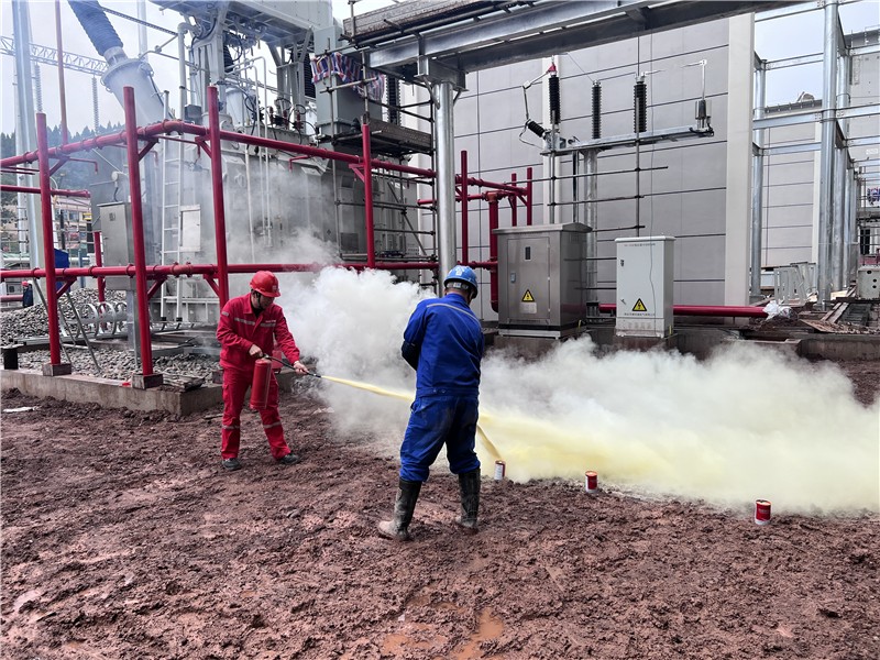 本次演練模擬倒送電第二次對(duì)#1啟備變充電完成后,#1啟備變風(fēng)冷控制箱著火,火勢(shì)呈進(jìn)一步擴(kuò)大趨勢(shì)的電氣著火事故。當(dāng)班巡檢人員及時(shí)發(fā)現(xiàn)火情并告知值長(zhǎng),值長(zhǎng)立即匯報(bào)應(yīng)急指揮部,并聯(lián)系省調(diào)申請(qǐng)#1啟備變停電,立即采取疏散人員、斷電隔離、滅火撲救,在各單位、各崗位人員通力合作下,大火被成功撲滅,應(yīng)急演練結(jié)束。整個(gè)演練過(guò)程銜接順暢、措施到位、處置得當(dāng),各單位、各崗位人員響應(yīng)迅速、分工明確、配合密切,切實(shí)提高了事故處置能力,達(dá)到了演練預(yù)期效果。