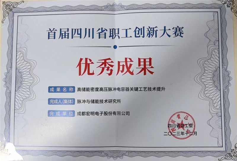 近日,由四川省總工會主辦、四川省電力工會承辦的“創(chuàng)新有我 智繪未來”四川省首屆職工創(chuàng)新大賽決賽在成都舉辦。川投信產(chǎn)所屬宏明電子的“高儲能密度高壓脈沖電容器關(guān)鍵工藝技術(shù)提升”項目喜獲“首屆四川省職工創(chuàng)新大賽”優(yōu)秀成果稱號。