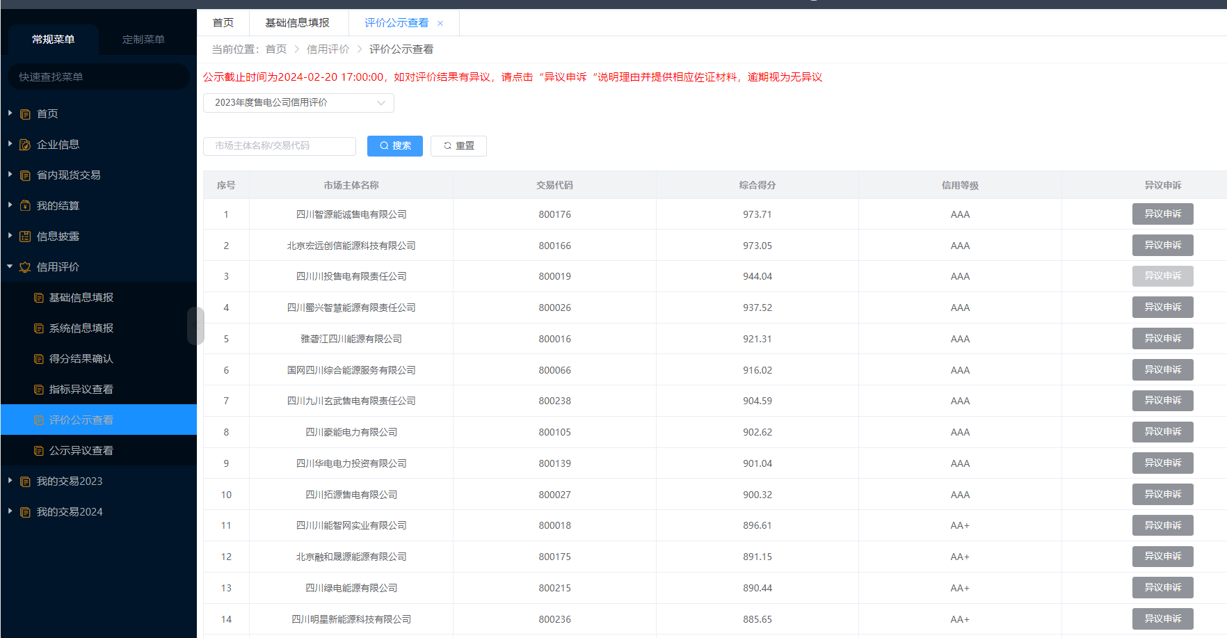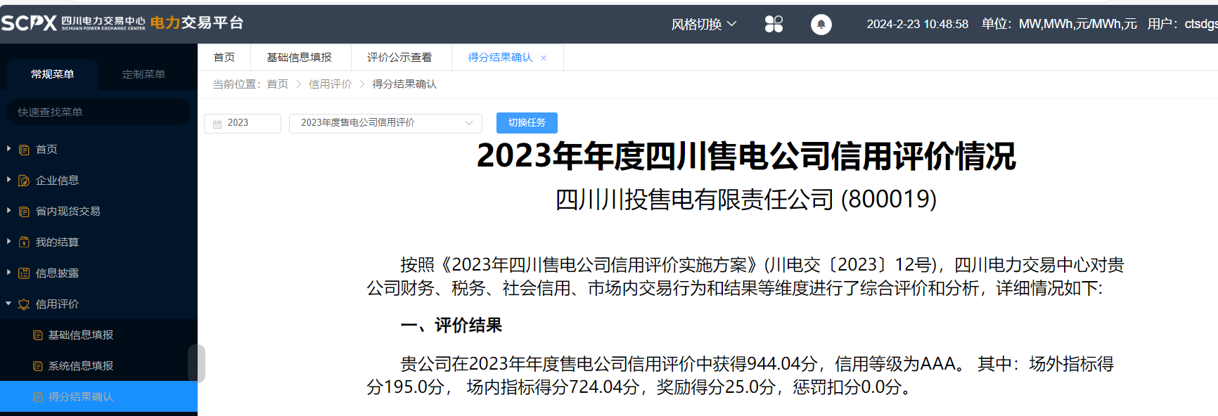 近日,在2023年的四川售電公司信用評價(jià)中,川投售電公司從293家售電公司中脫穎而出,榮獲AAA最高信用等級,在全省十家AAA信用評級中排名第三。