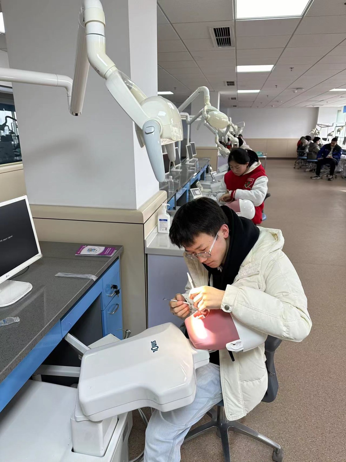 在實(shí)踐操作環(huán)節(jié),同學(xué)們?cè)卺t(yī)院仿頭模室體驗(yàn)了“牙醫(yī)的一天”,通過(guò)實(shí)踐操作,更加深入地了解了口腔醫(yī)生這個(gè)職業(yè),對(duì)口腔醫(yī)學(xué)的前沿發(fā)展和最新的教育教學(xué)手段都有了全新的認(rèn)識(shí)。