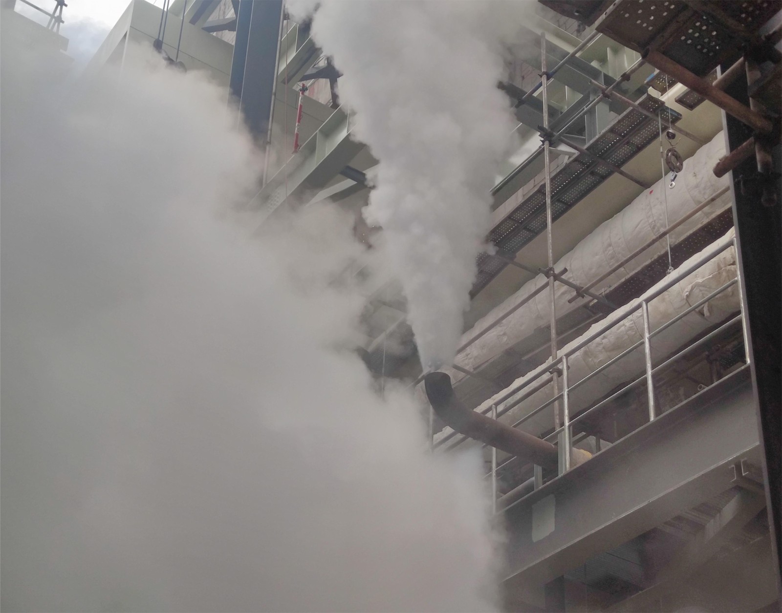 繼2月29日啟動鍋爐一次點火成功,3月2日項目開始啟動鍋爐調(diào)試和輔汽吹掃。在三天的時間里,各專業(yè)緊密聯(lián)系、積極配合,吹掃過程中嚴(yán)格把控系統(tǒng)狀態(tài),圓滿完成鍋爐清洗、煮爐以及啟動鍋爐出口管道、1號機與2號機機組間輔助蒸汽管道、1號機輔助蒸汽母管吹掃,順利達到驗收標(biāo)準(zhǔn)。