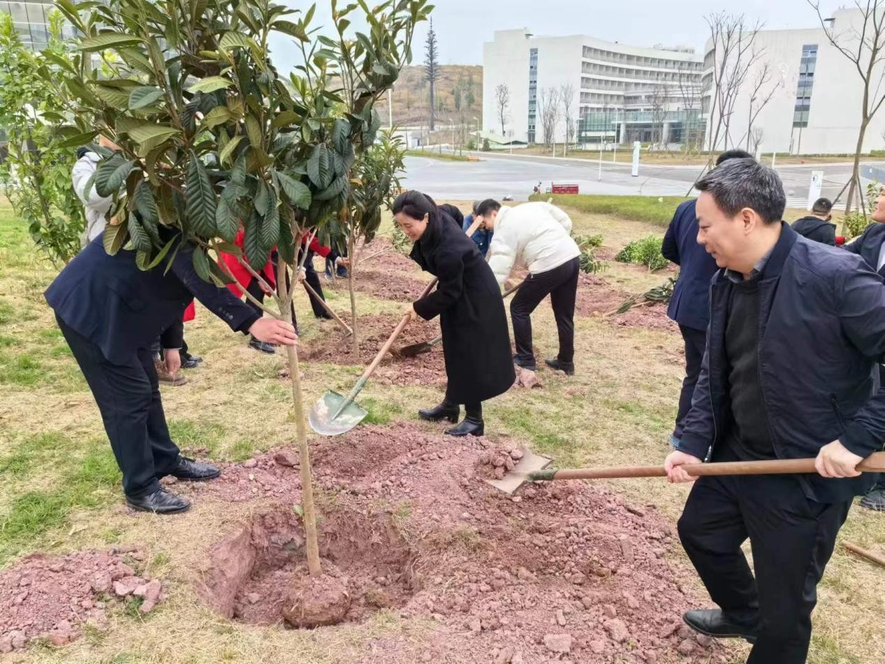 活動現(xiàn)場,公司攜佳友物業(yè)干部員工共計30余人在中國牙谷科創(chuàng)園保留山體相互配合,揮鍬鏟土、扶苗填坑、培土澆水,干勁十足,種下一棵棵希望的果樹苗。新栽植的樹苗迎風(fēng)而立、生機盎然,為園區(qū)再添新綠。