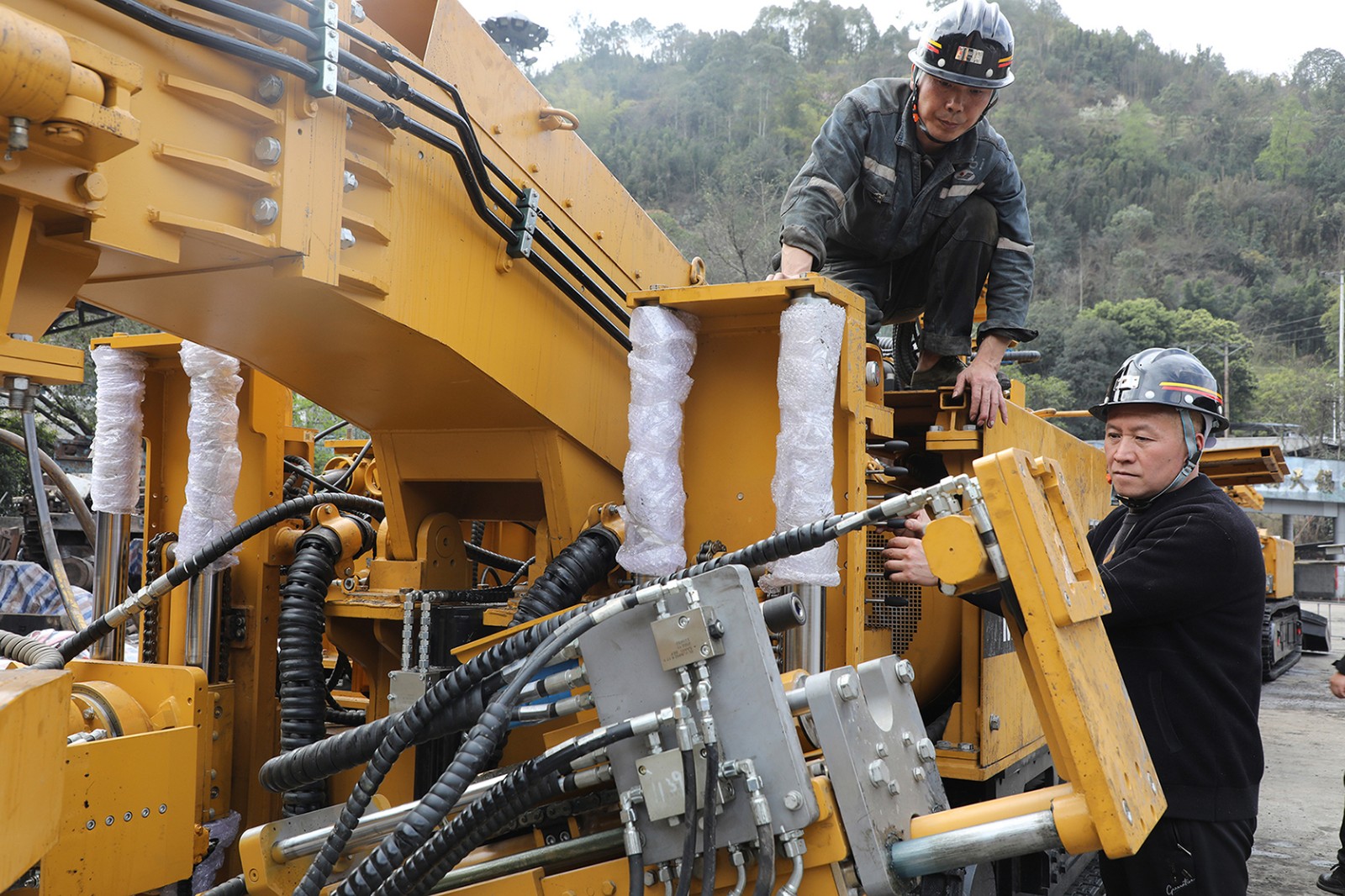 為了確保新購快速掘進(jìn)系統(tǒng)盡早入井投產(chǎn),嘉陽煤礦加速推進(jìn)地面三機聯(lián)調(diào)籌備工作。3月20日,掘進(jìn)一隊完成快速掘進(jìn)系統(tǒng)主要設(shè)備組裝后進(jìn)入調(diào)試階段,職工進(jìn)一步熟悉設(shè)備性能,全方位調(diào)試各子系統(tǒng)及設(shè)備部件。
