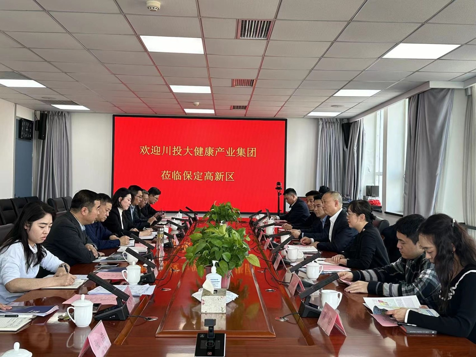 隨后,川投大健康產(chǎn)業(yè)集團(tuán)一行前往保定市高新區(qū)管委會(huì)交流。管委會(huì)黨工委書(shū)記馬義民、管委會(huì)副主任張靜、保定文發(fā)集團(tuán)黨委副書(shū)記、總經(jīng)理趙杰陪同。馬義民對(duì)川投大健康產(chǎn)業(yè)集團(tuán)一行的到訪表示歡迎,深度介紹了保定國(guó)際醫(yī)療基地在京津冀一體化進(jìn)程的發(fā)展趨勢(shì)以及承接北京非首都功能和雄安新區(qū)醫(yī)療需求的最新政策。魯洪斌介紹了川投大健康產(chǎn)業(yè)集團(tuán)基本情況和產(chǎn)業(yè)發(fā)展戰(zhàn)略。他提出,希望雙方可以在醫(yī)療、養(yǎng)老等方面拓寬合作渠道,進(jìn)一步促進(jìn)北京醫(yī)療資源與四川醫(yī)療資源的交流互動(dòng)。