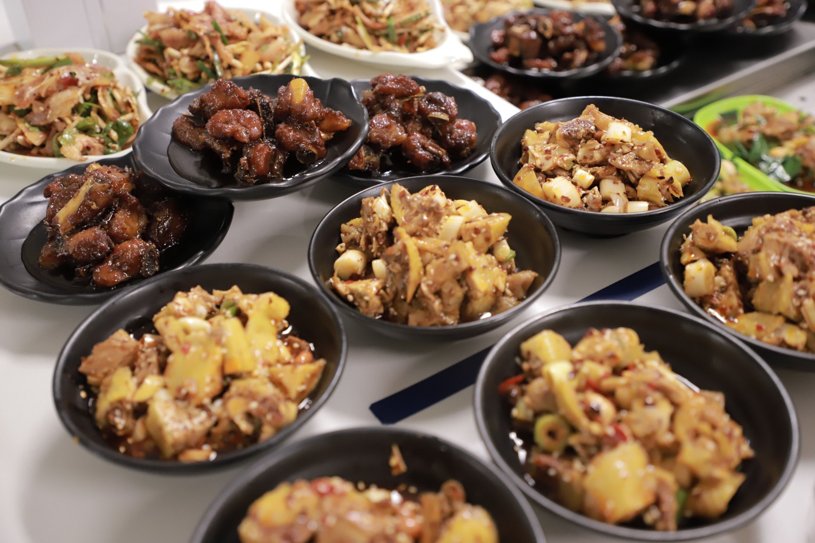 食堂所提供的菜式菜品均參照營(yíng)養(yǎng)師指導(dǎo),膳食搭配科學(xué)、營(yíng)養(yǎng),在保證?。ㄅ悖┤藸I(yíng)養(yǎng)所需的前提下,提供更科學(xué)全面的飲食;配餐區(qū)劃有湯粉包點(diǎn)類、自選餐類、炒(蓋)飯冒菜類、小碗菜四個(gè)區(qū)域,美味可口。每日正餐用餐保證供應(yīng)不少40于種葷素搭配菜品,包含肉禽蛋瓜茄豆菌菜,烹飪方式以拌蒸煮和快炒為主,控鹽控糖,保證營(yíng)養(yǎng)均衡、多樣選擇。
