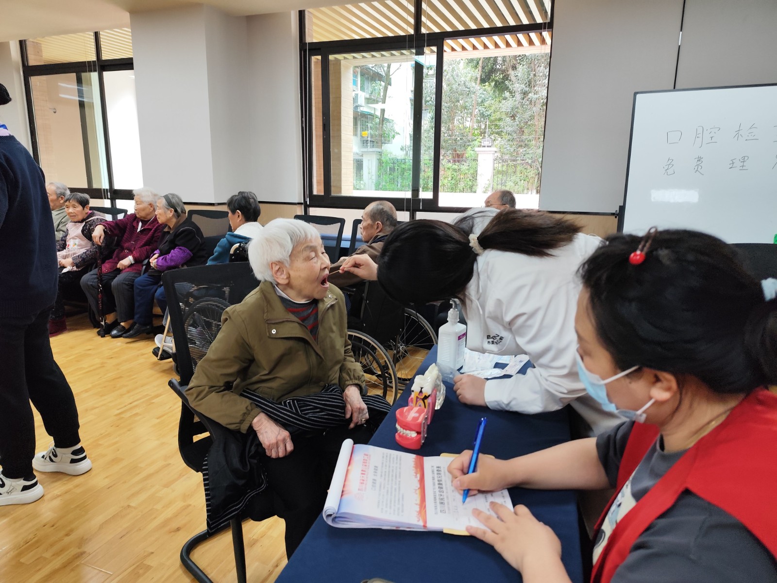 檢查中,武侯吉福院入住長者積極向醫(yī)生敘述自身牙齒、口腔狀況及目前出現(xiàn)的不適癥狀,醫(yī)生團隊對每位長者的口腔內(nèi)部進行詳細、認真地檢查,立足專業(yè),科學地為長者們提供了日常用齒、潔齒、護齒建議。