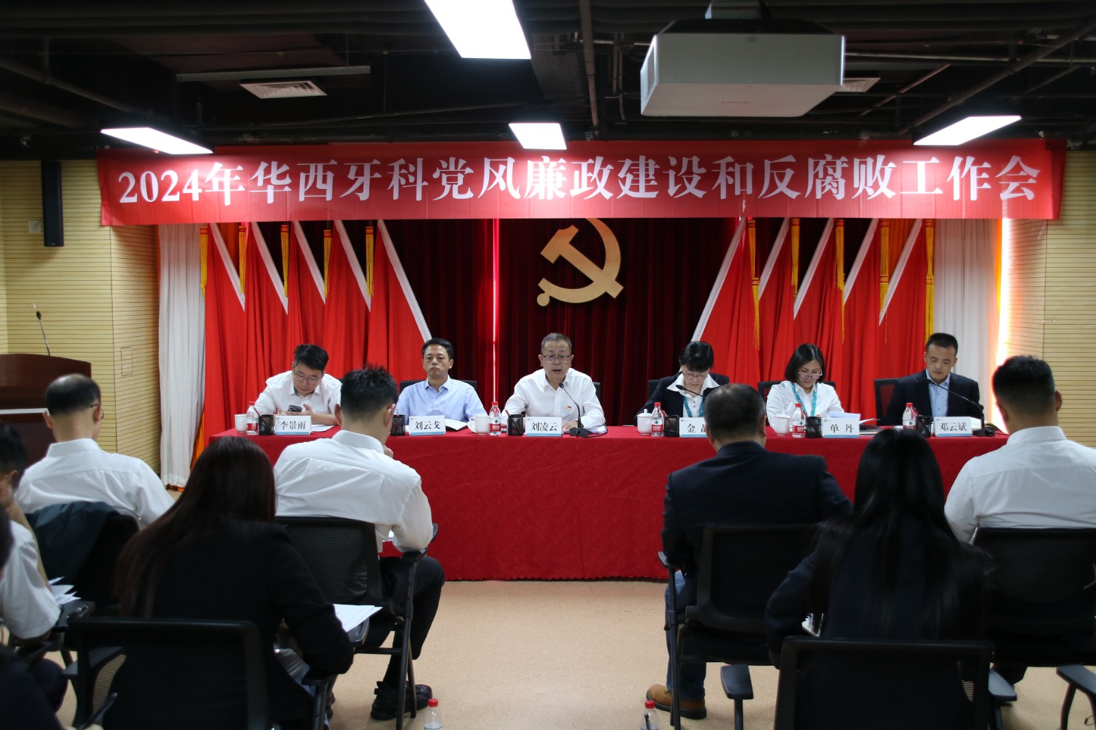 華西牙科領(lǐng)導(dǎo)班子成員出席會(huì)議,紀(jì)委委員,中層副職以上管理人員,所屬企業(yè)主要負(fù)責(zé)同志,黨員、群眾代表30余人參加會(huì)議。