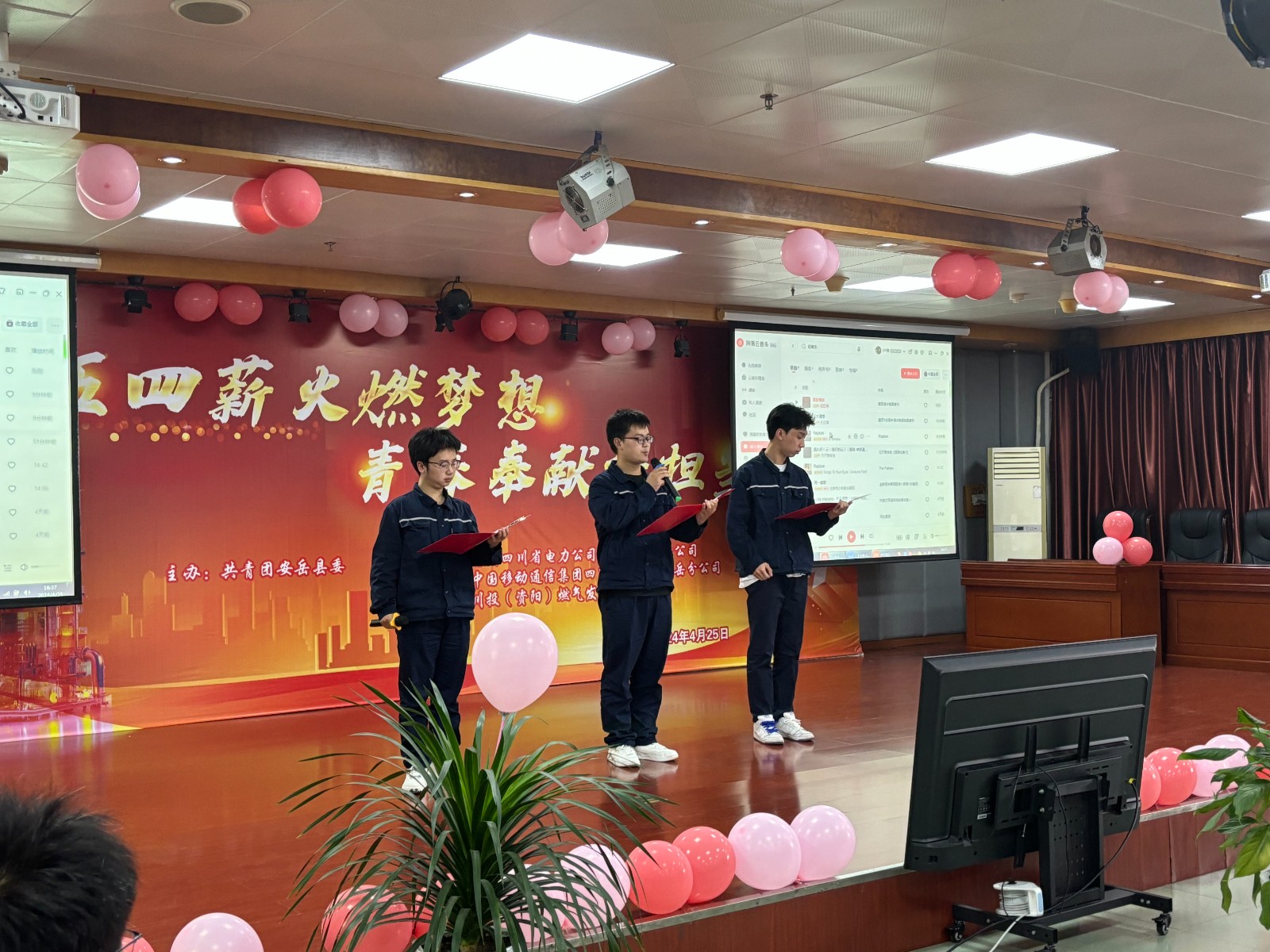 在中國共產(chǎn)主義青年團(tuán)建團(tuán)102周年和“五四運(yùn)動”105周年即將來臨之際,為教育引導(dǎo)廣大團(tuán)員青年賡續(xù)傳承五四精神,堅定跟黨走、建功新時代,展現(xiàn)團(tuán)員青年朝氣蓬勃、奮發(fā)進(jìn)取的精神面貌。4月25日,資陽氣電團(tuán)支部聯(lián)合安岳縣團(tuán)委、國網(wǎng)安岳縣供電公司、安岳移動通信公司開展“五四薪火燃夢想 青春奉獻(xiàn)挺擔(dān)當(dāng)”五四青年節(jié)主題團(tuán)日活動。