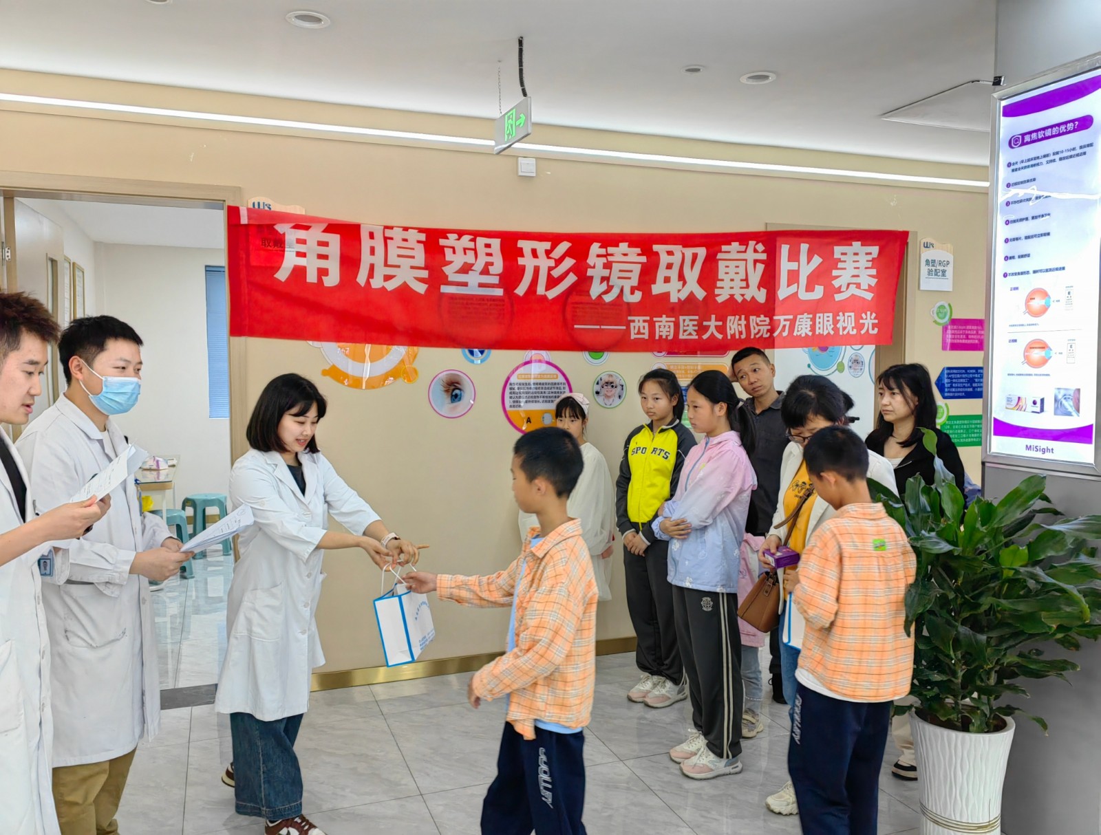為幫助佩戴角膜塑形鏡的小朋友可以正確掌握角膜塑形鏡護(hù)理及摘戴方法,5月4日,萬康公司眼視光診所開展了角膜塑形鏡摘戴比賽暨青少年視力保護(hù)宣傳活動。