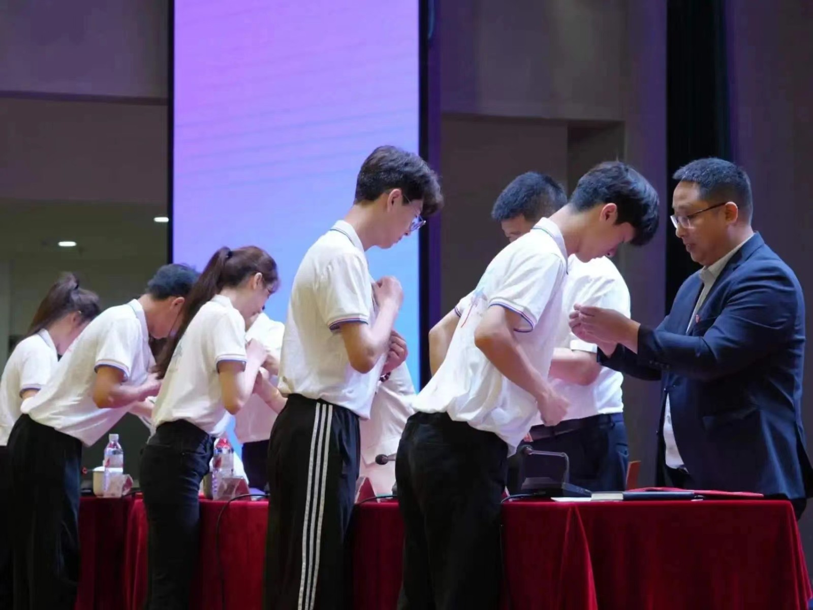 入團(tuán)儀式上,學(xué)生工作部部長許宏君宣讀《2024年上半年新團(tuán)員入團(tuán)名單》,與會領(lǐng)導(dǎo)為新團(tuán)員佩戴團(tuán)徽、頒發(fā)團(tuán)員證。全體新老團(tuán)員莊嚴(yán)宣誓。