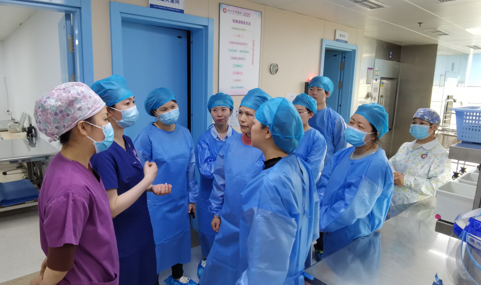 5月6日,青羊區(qū)醫(yī)院感染質(zhì)量控制中心主任袁華帶領(lǐng)區(qū)上各大醫(yī)療機(jī)構(gòu)17名院感專家蒞臨四川口腔醫(yī)院參觀交流。四川口腔醫(yī)院院長助理、護(hù)理部主任蔣薇、消毒供應(yīng)中心護(hù)士長田麗娜、院感科主管曹棟陪同。