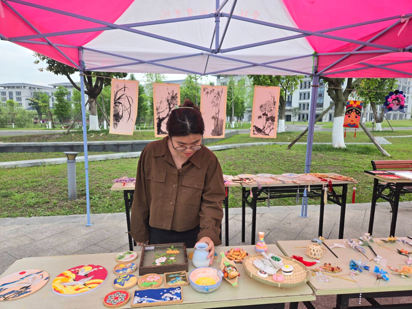 此次活動(dòng)分為“參觀+體驗(yàn)”兩個(gè)版塊,集中展示2023級學(xué)生制作關(guān)于書畫、掐絲琺瑯、團(tuán)扇、竹編工藝、刺繡、花燈的六大作品,設(shè)置點(diǎn)茶、拓印、猜燈謎、詩詞接龍的文化體驗(yàn)環(huán)節(jié),讓同學(xué)們近距離感悟中華優(yōu)秀傳統(tǒng)文化的魅力。