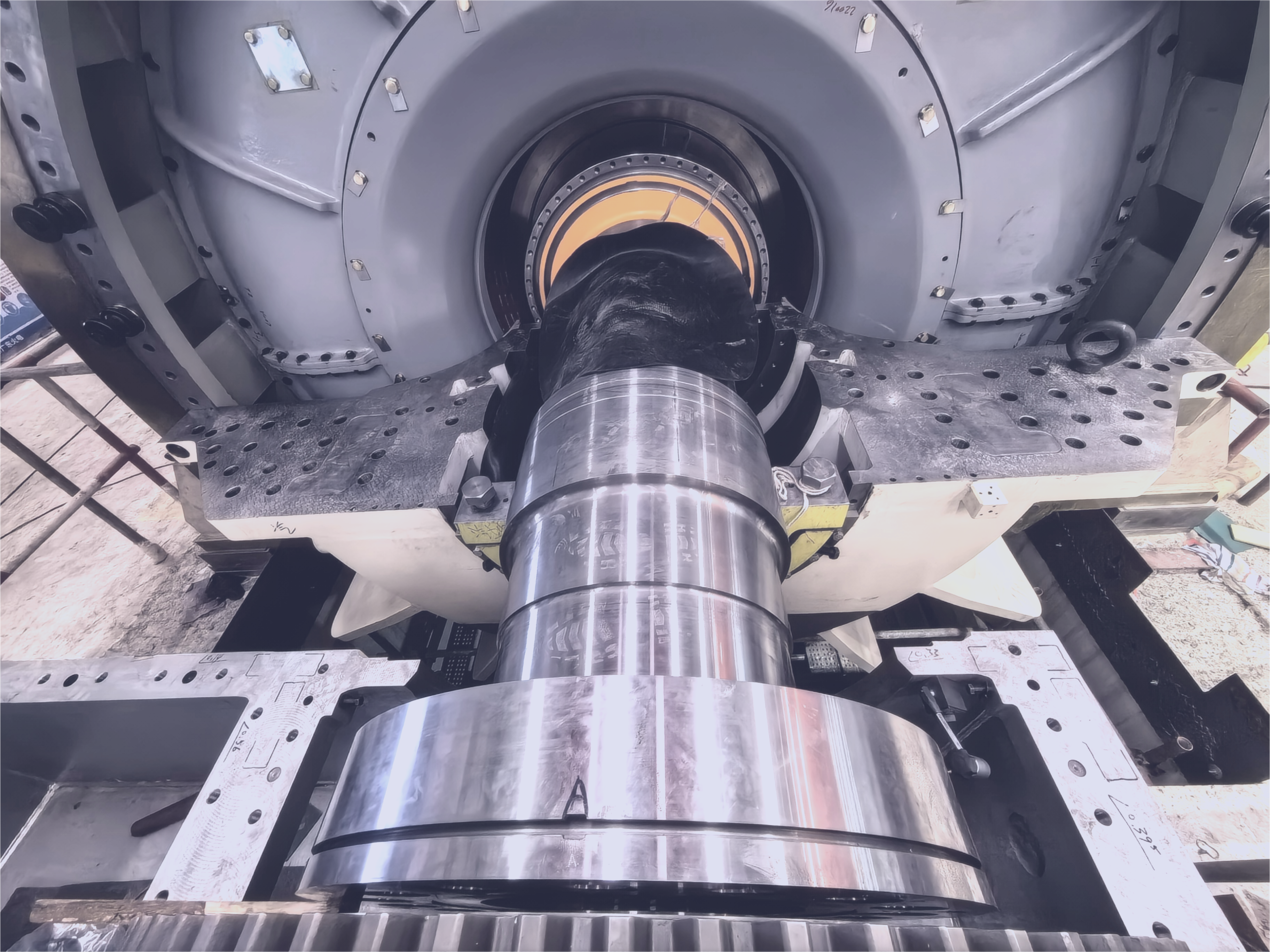 5月18日8時(shí)30分,隨著現(xiàn)場(chǎng)指揮一聲令下,長(zhǎng)14米、重88噸的轉(zhuǎn)子被緩緩吊起。現(xiàn)場(chǎng)施工作業(yè)人員按照分工安排密切配合,精確調(diào)整轉(zhuǎn)子的方向位置、穿入量,轉(zhuǎn)子平穩(wěn)進(jìn)入定子膛。歷經(jīng)10個(gè)小時(shí)連續(xù)作業(yè),轉(zhuǎn)子全部穿引進(jìn)入完畢,穿裝工作順利完成。
