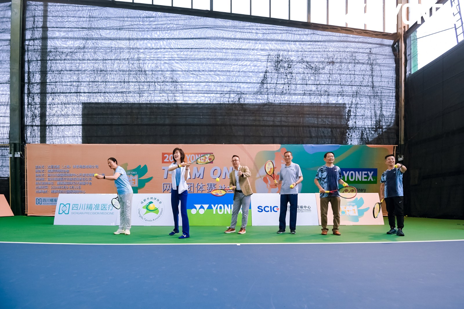 6月9日上午,2024 YONEX“TEAM ONE”網(wǎng)球團(tuán)體賽-社會組-成都站比賽在川投國網(wǎng)公司順利開賽。成都市網(wǎng)球協(xié)會主席李忠貴,尤尼克斯上海體育用品有限公司銷售本部副部長兼網(wǎng)球推廣部部長陳政隆,成都市網(wǎng)球協(xié)會副主席李冀偉,成都市網(wǎng)球協(xié)會副主席楊敏,川投國網(wǎng)公司黨委書記、執(zhí)行董事白蕾,成都市網(wǎng)球協(xié)會副主席林家銳等嘉賓參加開幕式并開拍。