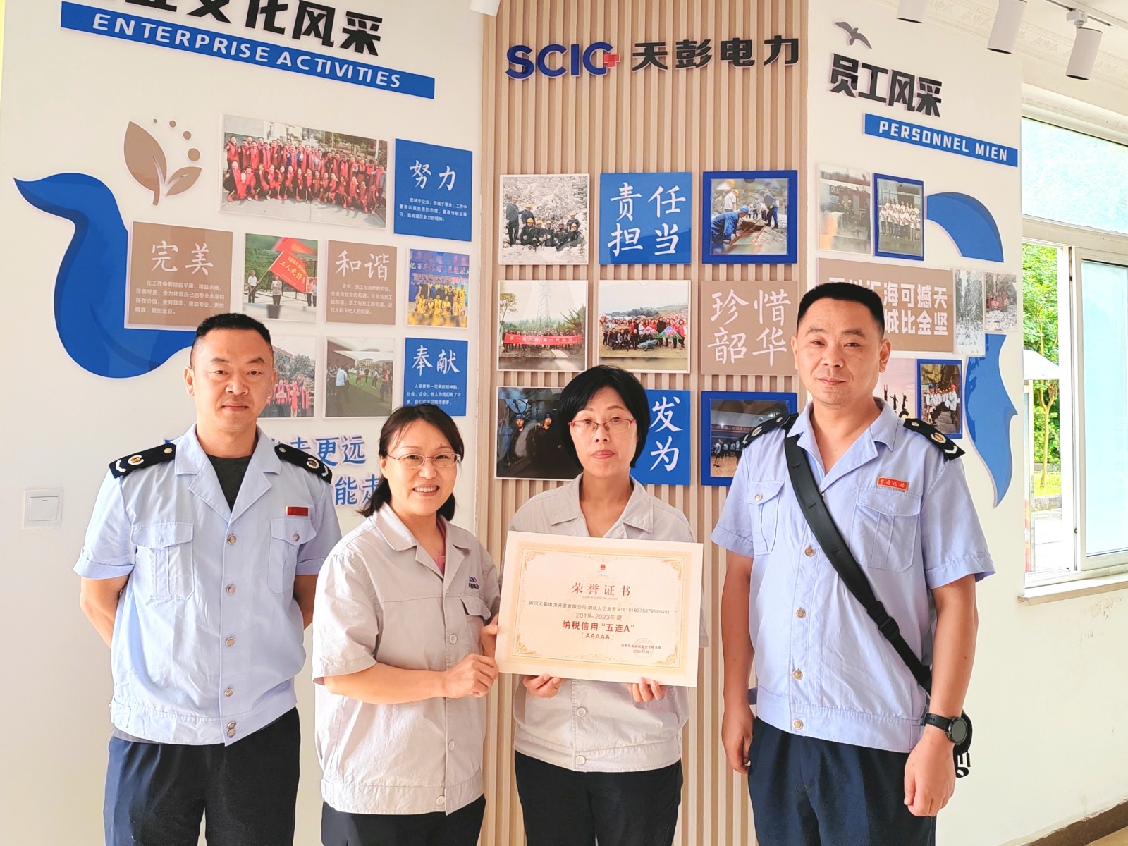6月11日,川投能源所屬天彭電力公司喜獲殊榮:國家稅務(wù)總局彭州市稅務(wù)局向我公司授予了“彭州市‘2019-2023年度納稅信用五連A’”榮譽(yù)證書,這是稅務(wù)機(jī)關(guān)對(duì)我公司誠信納稅、守法經(jīng)營的肯定和表彰。