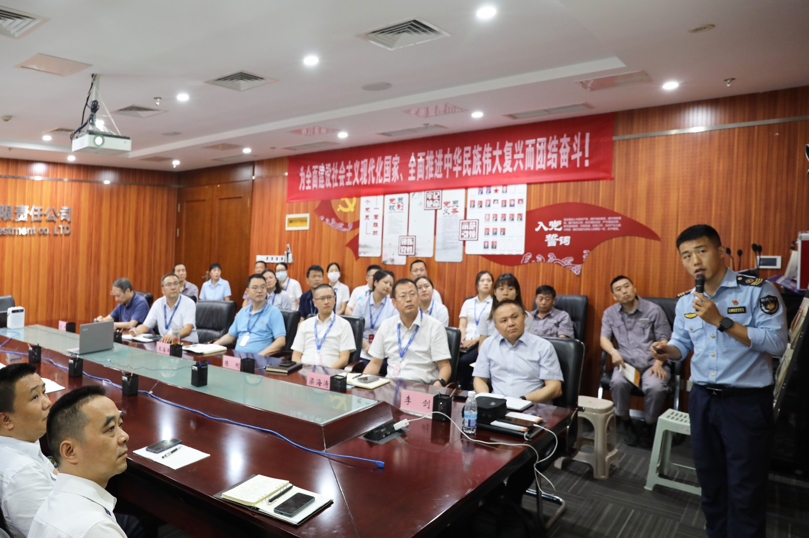 為深入學習貫徹黨的二十大精神和習近平總書記關于應急管理和安全生產重要論述,按照成都市消防安全治本攻堅三年行動工作要求,結合“安全生產月”工作部署,6月12日,房地產公司聯合川投佳友物業(yè)邀請成都利民消防宣傳中心李凱教官開展消防安全知識培訓。公司黨總支副書記、總經理、安環(huán)職委會主任王海洋,公司安環(huán)職委會常務副主任、副總經理梁海濤,副總經理陳剛,PPP公司副總經理李劍、劉暢及公司本部全體員工,所屬公司負責人及安全管理相關人員共20余人現場或視頻參加培訓會。川投佳友物業(yè)分管安全副總經理侯永勝,佳友物業(yè)本部及項目部員工共約20人一同參加培訓。