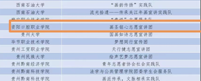 近日,團(tuán)中央“中國(guó)歷代繪畫大系”全國(guó)大學(xué)生志愿宣講團(tuán)入選名單公布,資陽(yáng)口腔職業(yè)學(xué)院由醫(yī)學(xué)系輔導(dǎo)員霍喜老師指導(dǎo)的“畫圣銘心志愿宣講團(tuán)”成功入選。
