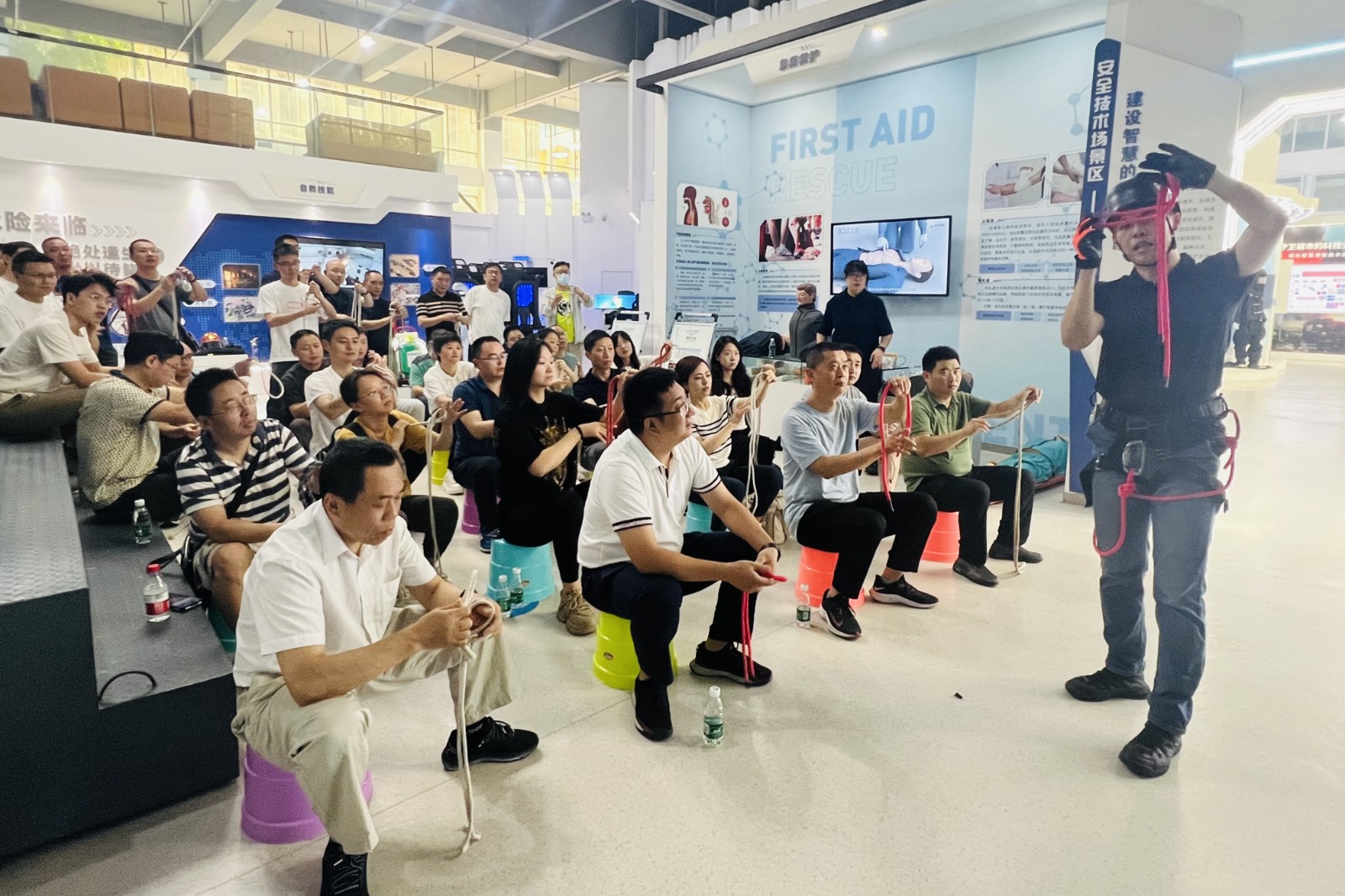 此次培訓(xùn)邀請了原中國國際救援隊(duì)退役隊(duì)員、紅十字國際學(xué)院培訓(xùn)講師等組成的專業(yè)團(tuán)隊(duì),采用“分班精講+實(shí)戰(zhàn)操作”的雙軌教學(xué)模式進(jìn)行現(xiàn)場教學(xué)。課程圍繞2024年“安全生產(chǎn)月”活動(dòng)主題“人人講安全、個(gè)個(gè)會應(yīng)急—暢通生命通道”,結(jié)合公司實(shí)際,內(nèi)容涵蓋地震地質(zhì)災(zāi)害防范、消防安全、醫(yī)療急救、火災(zāi)及高空逃生等急救自救知識,通過VR環(huán)境模擬體驗(yàn)、實(shí)景演練等方式,邊講邊學(xué)、邊練邊學(xué),全面且詳細(xì)地解析了突發(fā)情況下應(yīng)急處理的各項(xiàng)要領(lǐng)。
