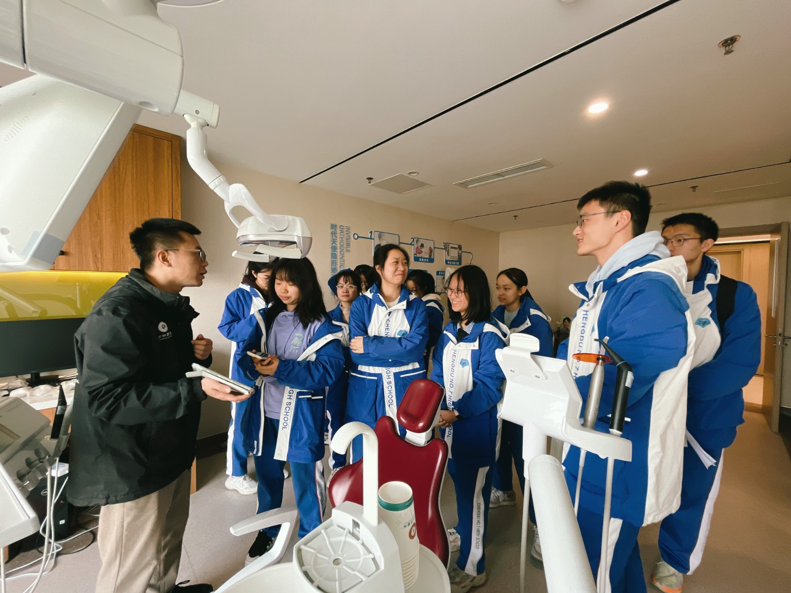 研學(xué)活動現(xiàn)場,成都七中的同學(xué)們在四川口腔醫(yī)院工作人員的引領(lǐng)下,依次參觀了頜面外科、兒童口腔科、牙體牙髓科等多個(gè)科室,大致了解了各個(gè)科室的功能和工作流程。在隨后的口腔健康科普講座上,四川口腔醫(yī)院醫(yī)生憑借豐富的專業(yè)知識和臨床經(jīng)驗(yàn),向同學(xué)們傳授了口腔衛(wèi)生的重要性以及護(hù)理技巧,還分享了醫(yī)學(xué)類高等院校專業(yè)分類以及口腔醫(yī)生成長的寶貴經(jīng)驗(yàn),激發(fā)了同學(xué)們對口腔醫(yī)學(xué)及醫(yī)療行業(yè)的濃厚興趣。