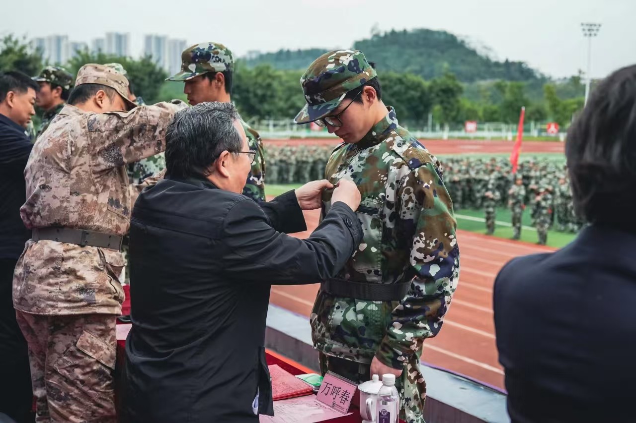 學(xué)院表彰了優(yōu)秀標(biāo)兵、優(yōu)秀教官、優(yōu)秀連隊(duì)、先進(jìn)工作者和優(yōu)秀新生。學(xué)院領(lǐng)導(dǎo)為新生代表佩戴?;?。