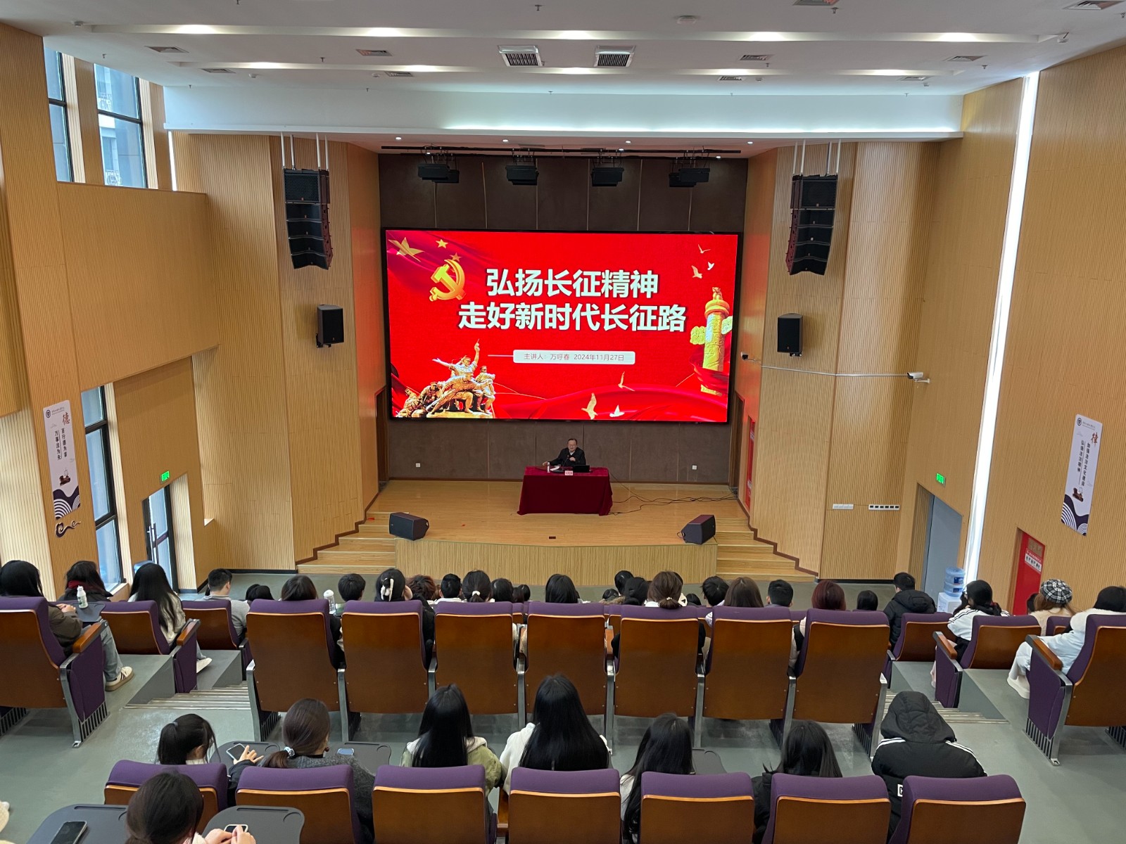 為學習貫徹落實《黨史學習教育工作條例》,深入實施時代新人鑄魂工程,運用好傳承好紅色基因,教育引導學生增強踐行“兩個維護”的高度自覺,近日,資陽口腔職業(yè)學院院長萬呼春在圖書館學術報告廳為150余名學生代表講授“弘揚長征精神,走好新時代長征路”專題思政課。